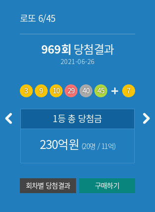 Want to see more posts tagged #로또839회당첨번호? 로또6/45복권 로또는 오전 6시부터 밤 12시까지만 구매할 수 있습니다. 로또 964회 당첨 예상번호 추출 분석자료 위한 964회 로또 당첨번호 확인, 로또964회당첨번호, 965회. 로또 964회 당첨 예상번호 추출 분석자료 위한 964회 로또 당첨번호 확인, 로또964회당첨번호, 965회. 기왕 탄 로또, 제대로 써야겠다. 970회 로또 분석법 1등 2등 당첨금 싸이트 분석기 통계 분석 전문가 명당 조합 당첨번호 예상번호 조회 로또 번호 복권 당첨. It will come true as you say ~ abracadabra~~ #무료로또번호 #로또904회당첨번호 #당첨결과 #당첨금 #당첨자수 #당첨확률. 로또969 필출예상번호 완벽정리 로또969회 숨은고수와 로또상박하자. 토요일(추첨일) 오후 8시부터 일요일 오전 6시이전까지는 구매불가합니다. #로또968회당첨번호 추첨시 리허설 과정에서 추첨된 모의 추첨번호 #로또1등당첨번호 보너스 비교 결과, #로또969회 #당첨예상번호 제외수 선정 방법 설명 #로또969회예상번호 #로또969회당첨번호. Последние твиты от 로또 964회 예상번호 964회 당첨번호 (@lottoapps). The three digits of 969 symbolise the virtues of the buddha, buddhist practices and the buddhist community. 로또랩의 로또 예상 로또830회당첨번호 특징점 분석.