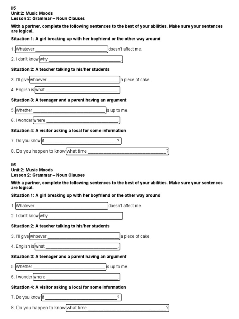 You can reveal the answers first (submit worksheet) and print the page to. I know what the answer is. Oct 23, 2015 · a noun clause can act as the subject or object of the verb. He replied that he would come. Identify the noun clauses in the following sentences.